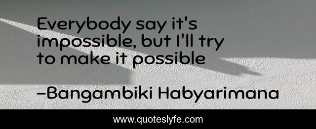This page presents the quote "Everybody say it's impossible, but I'll try to make it possible". Author of this quote is Bangambiki Habyarimana. .