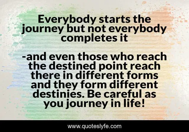 "and even those who reach the destined point reach there in different forms and they form different destinies. Be careful as you journey in life! Quotes." Quoteslyfe.com, 2025. Fri. 05 Dec. 2025. <https://www.quoteslyfe.com/quote/Everybody-starts-the-journey-but-not-everybody-174443>.