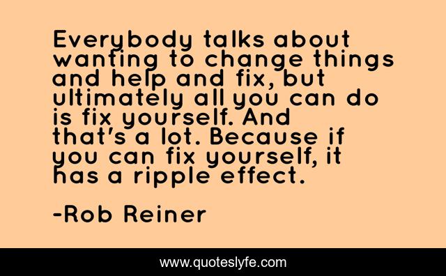 This page presents the quote "Everybody talks about wanting to change things and help and fix, but ultimately all you can do is fix yourself. And that's a lot. Because if you can fix yourself, it has a ripple effect.". Author of this quote is Rob Reiner. This quote is about ripple, help, yourself,.