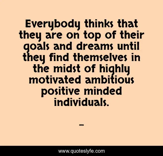 This page presents the quote "Everybody thinks that they are on top of their goals and dreams until they find themselves in the midst of highly motivated ambitious positive minded individuals.". Author of this quote is . This quote is about edmond-mbiaka, on-top-of-your-goals-and-dreams, individuals, ambitious, positive-minded, highly-motivated,.