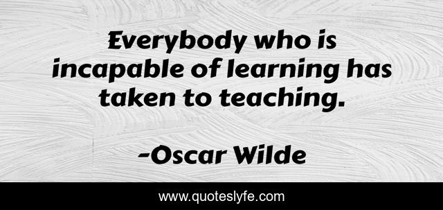This page presents the quote "Everybody who is incapable of learning has taken to teaching.". Author of this quote is Oscar Wilde. This quote is about everybody, incapable, wit, college, learning, humility, teaching,.