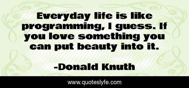 This page presents the quote "Everyday life is like programming, I guess. If you love something you can put beauty into it.". Author of this quote is Donald Knuth. This quote is about life, love, affection,.