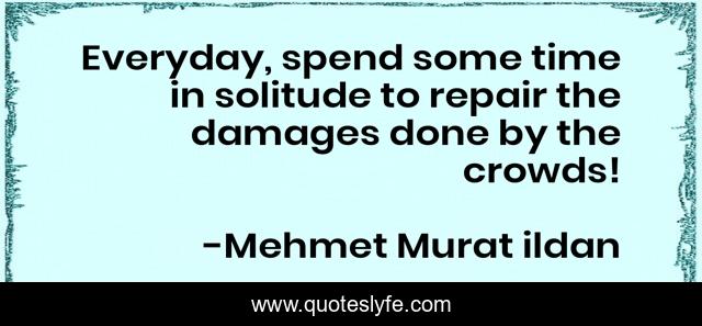 This page presents the quote "Everyday, spend some time in solitude to repair the damages done by the crowds!". Author of this quote is Mehmet Murat ildan. .