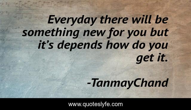 This page presents the quote "Everyday there will be something new for you but it’s depends how do you get it.". Author of this quote is TanmayChand. .