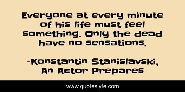 This page presents the quote "Everyone at every minute of his life must feel something. Only the dead have no sensations.". Author of this quote is Konstantin Stanislavski, An Actor Prepares. This quote is about life, dead, feelings-and-emotions,.