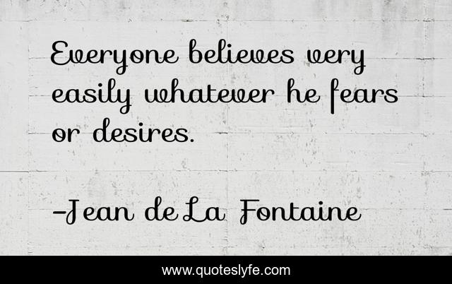"Jean de La Fontaine Quotes." Quoteslyfe.com, 2025. Sun. 07 Dec. 2025. <https://www.quoteslyfe.com/quote/Everyone-believes-very-easily-whatever-he-fears-44980>.