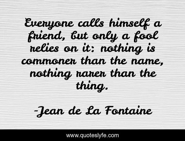 This page presents the quote "Everyone calls himself a friend, but only a fool relies on it: nothing is commoner than the name, nothing rarer than the thing.". Author of this quote is Jean de La Fontaine. .