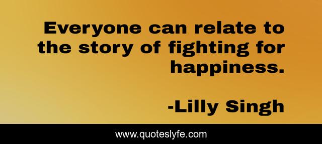 This page presents the quote "Everyone can relate to the story of fighting for happiness.". Author of this quote is Lilly Singh. This quote is about story, everyone, fighting,.