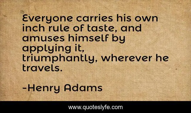 This page presents the quote "Everyone carries his own inch rule of taste, and amuses himself by applying it, triumphantly, wherever he travels.". Author of this quote is Henry Adams. This quote is about taste, everyone, wherever,.