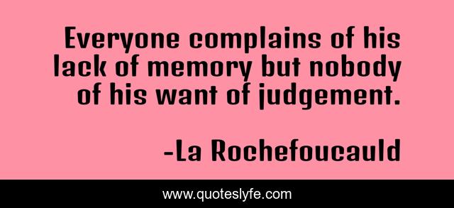 This page presents the quote "Everyone complains of his lack of memory but nobody of his want of judgement.". Author of this quote is La Rochefoucauld. .