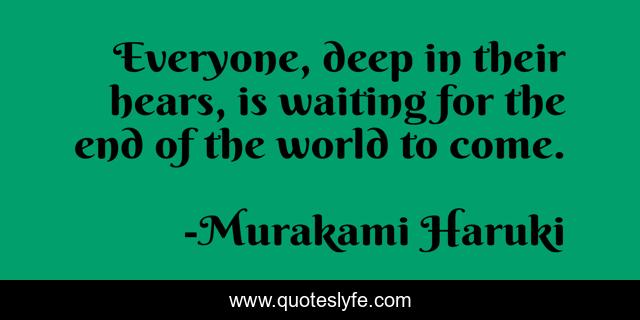 This page presents the quote "Everyone, deep in their hears, is waiting for the end of the world to come.". Author of this quote is Murakami Haruki. .