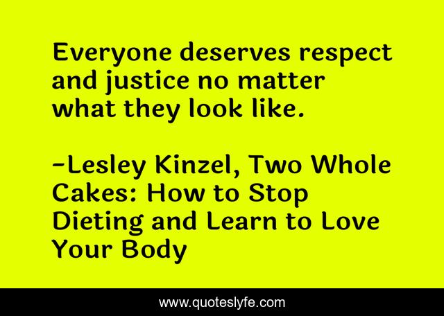 "Lesley Kinzel, Two Whole Cakes: How to Stop Dieting and Learn to Love Your Body Quotes." Quoteslyfe.com, 2025. Sat. 06 Dec. 2025. <https://www.quoteslyfe.com/quote/Everyone-deserves-respect-and-justice-no-matter-185124>.