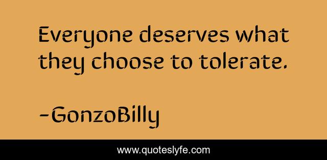 This page presents the quote "Everyone deserves what they choose to tolerate.". Author of this quote is GonzoBilly. This quote is about common-sense, psychology,.