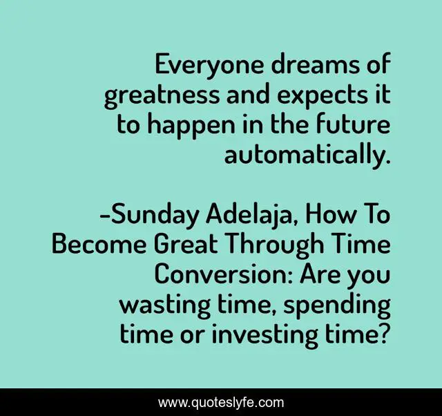 "Sunday Adelaja, How To Become Great Through Time Conversion: Are you wasting time, spending time or investing time? Quotes." Quoteslyfe.com, 2025. Sat. 06 Dec. 2025. <https://www.quoteslyfe.com/quote/Everyone-dreams-of-greatness-and-expects-it-39198>.