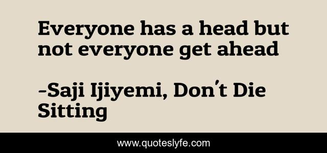This page presents the quote "Everyone has a head but not everyone get ahead". Author of this quote is Saji Ijiyemi, Don't Die Sitting. This quote is about excelling, getting-ahead, prosperity, successful,.