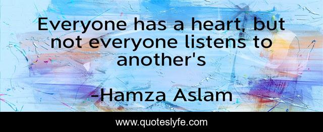 This page presents the quote "Everyone has a heart, but not everyone listens to another's". Author of this quote is Hamza Aslam. This quote is about heart, confidence, motivational-inspirational, motivational, optimistic, positive, heartbroken,.