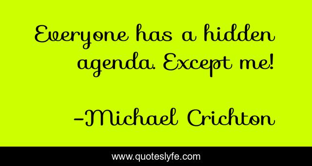 "Michael Crichton Quotes." Quoteslyfe.com, 2025. Sat. 06 Dec. 2025. <https://www.quoteslyfe.com/quote/Everyone-has-a-hidden-agenda-Except-me-5126>.