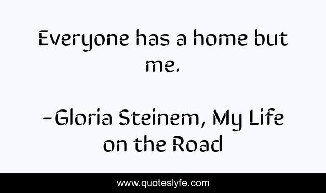 "Gloria Steinem, My Life on the Road Quotes." Quoteslyfe.com, 2025. Fri. 05 Dec. 2025. <https://www.quoteslyfe.com/quote/Everyone-has-a-home-but-me-101870>.