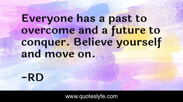 This page presents the quote "Everyone has a past to overcome and a future to conquer. Believe yourself and move on.". Author of this quote is RD. This quote is about conquer, believe, move-on,.