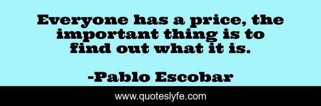 This page presents the quote "Everyone has a price, the important thing is to find out what it is.". Author of this quote is Pablo Escobar. This quote is about drugs, enthusiasm, real-word, inspirational,.
