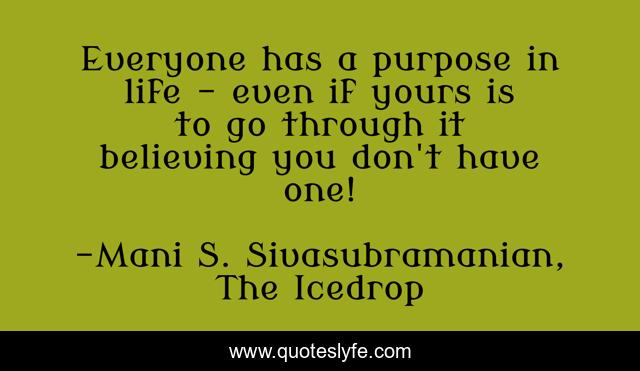 "Mani S. Sivasubramanian, The Icedrop Quotes." Quoteslyfe.com, 2025. Fri. 05 Dec. 2025. <https://www.quoteslyfe.com/quote/Everyone-has-a-purpose-in-life-even-256317>.