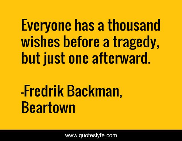 This page presents the quote "Everyone has a thousand wishes before a tragedy, but just one afterward.". Author of this quote is Fredrik Backman, Beartown. This quote is about wish, tragedy,.