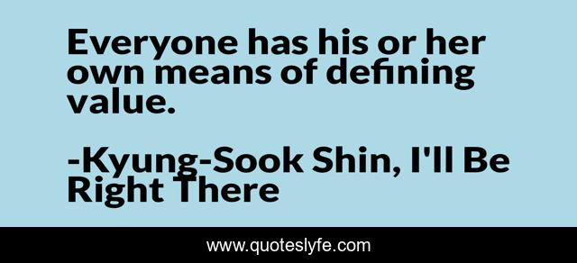 This page presents the quote "Everyone has his or her own means of defining value.". Author of this quote is Kyung-Sook Shin, I'll Be Right There. .