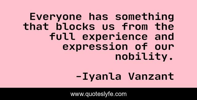 This page presents the quote "Everyone has something that blocks us from the full experience and expression of our nobility.". Author of this quote is Iyanla Vanzant. This quote is about everyone, expression,.