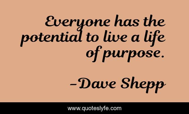 This page presents the quote "Everyone has the potential to live a life of purpose.". Author of this quote is Dave Shepp. This quote is about life, potential, purpose,.
