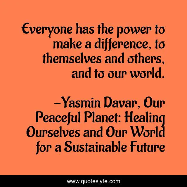 "Yasmin Davar, Our Peaceful Planet: Healing Ourselves and Our World for a Sustainable Future Quotes." Quoteslyfe.com, 2025. Sat. 06 Dec. 2025. <https://www.quoteslyfe.com/quote/Everyone-has-the-power-to-make-a-73270>.