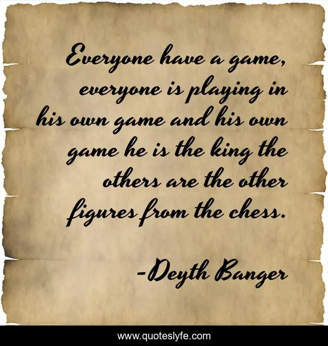This page presents the quote "Everyone have a game, everyone is playing in his own game and his own game he is the king the others are the other figures from the chess.". Author of this quote is Deyth Banger. This quote is about logic, not-really, from, chess, really,.