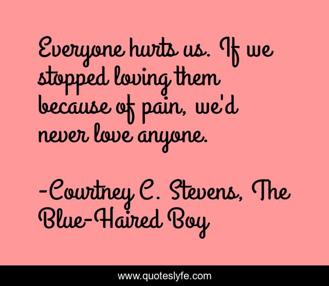 "Courtney C. Stevens, The Blue-Haired Boy Quotes." Quoteslyfe.com, 2025. Mon. 08 Dec. 2025. <https://www.quoteslyfe.com/quote/Everyone-hurts-us-If-we-stopped-loving-76437>.