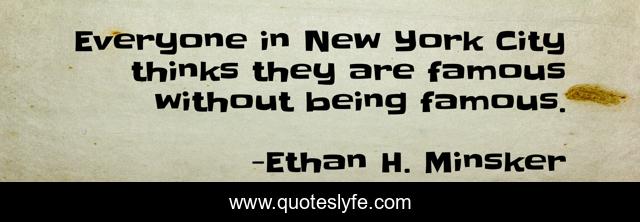 This page presents the quote "Everyone in New York City thinks they are famous without being famous.". Author of this quote is Ethan H. Minsker. This quote is about famous, new-york-city, new-york, nyc,.