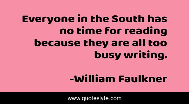 This page presents the quote "Everyone in the South has no time for reading because they are all too busy writing.". Author of this quote is William Faulkner. This quote is about faulkner, south, writing,.