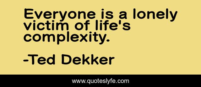 This page presents the quote "Everyone is a lonely victim of life's complexity.". Author of this quote is Ted Dekker. This quote is about enthusiasm, life, true, loneliness, inspirational,.