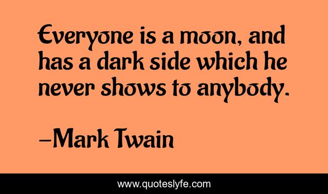 This page presents the quote "Everyone is a moon, and has a dark side which he never shows to anybody.". Author of this quote is Mark Twain. This quote is about human-nature, darkness, moon,.