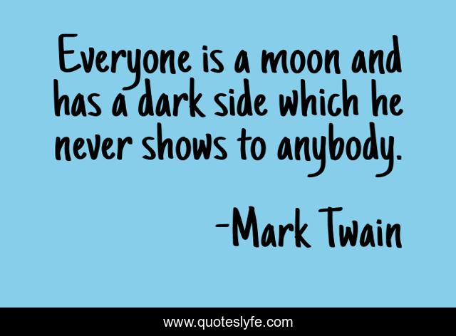 This page presents the quote "Everyone is a moon and has a dark side which he never shows to anybody.". Author of this quote is Mark Twain. This quote is about character, personality,.