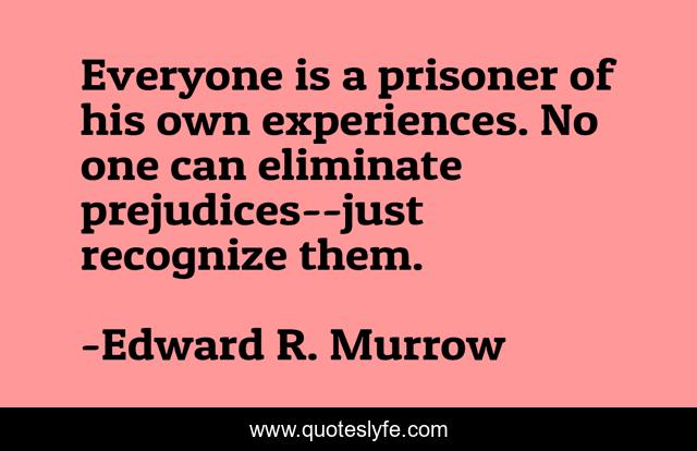 This page presents the quote "Everyone is a prisoner of his own experiences. No one can eliminate prejudices--just recognize them.". Author of this quote is Edward R. Murrow. This quote is about life, prejudice, experience,.