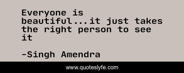 This page presents the quote "Everyone is beautiful...it just takes the right person to see it". Author of this quote is Singh Amendra. .