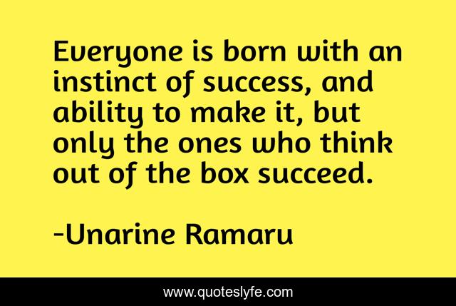 This page presents the quote "Everyone is born with an instinct of success, and ability to make it, but only the ones who think out of the box succeed.". Author of this quote is Unarine Ramaru. This quote is about motivation, ability, success, behaviour, extraordinary, attitude, succeed, business, out-of-the-box,.