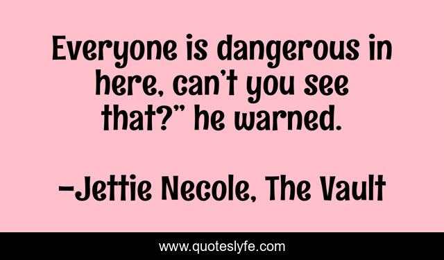 This page presents the quote "Everyone is dangerous in here, can’t you see that?” he warned.". Author of this quote is Jettie Necole, The Vault. This quote is about apocalypse, new-adult-dystopian-romance,.