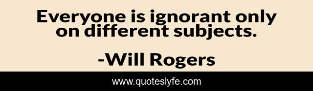 This page presents the quote "Everyone is ignorant only on different subjects.". Author of this quote is Will Rogers. This quote is about vices, foibles,.