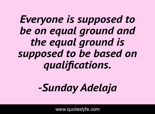 This page presents the quote "Everyone is supposed to be on equal ground and the equal ground is supposed to be based on qualifications.". Author of this quote is Sunday Adelaja. This quote is about equality, qualifications,.