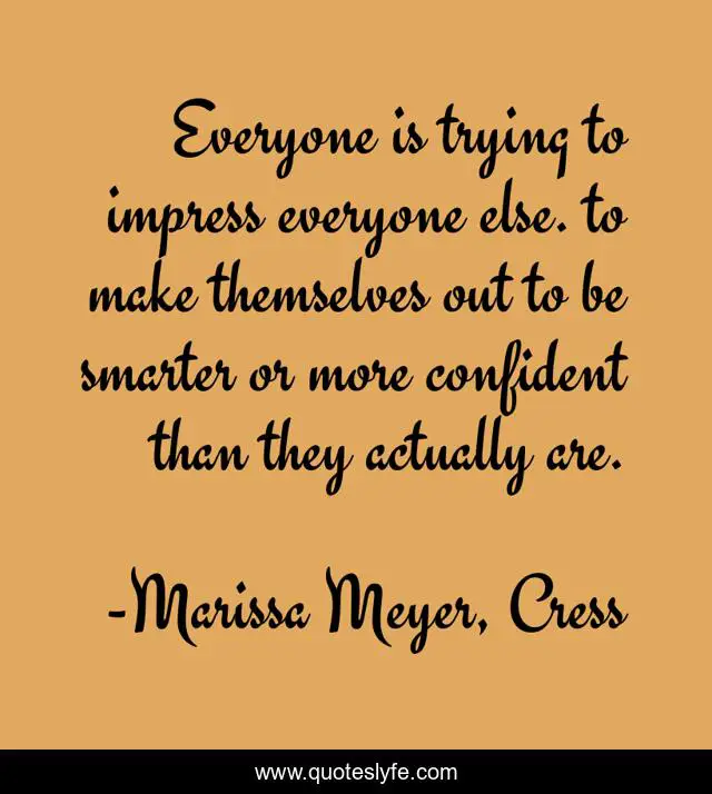 "Marissa Meyer, Cress Quotes." Quoteslyfe.com, 2025. Sat. 06 Dec. 2025. <https://www.quoteslyfe.com/quote/Everyone-is-trying-to-impress-everyone-else-102527>.