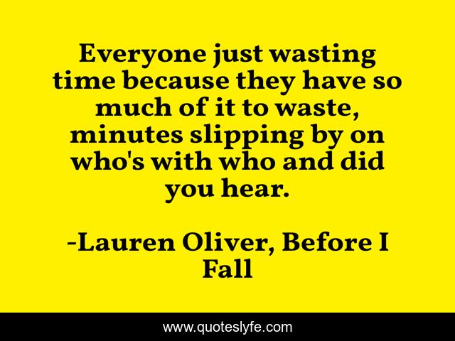 This page presents the quote "Everyone just wasting time because they have so much of it to waste, minutes slipping by on who's with who and did you hear.". Author of this quote is Lauren Oliver, Before I Fall. This quote is about importance, appreciation, time, inspirational, enthusiasm,.