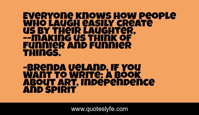 This page presents the quote "Everyone knows how people who laugh easily create us by their laughter, --making us think of funnier and funnier things.". Author of this quote is Brenda Ueland, If You Want to Write: A Book about Art, Independence and Spirit. This quote is about humor, laughter, writing,.
