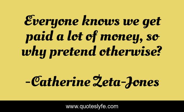 This page presents the quote "Everyone knows we get paid a lot of money, so why pretend otherwise?". Author of this quote is Catherine Zeta-Jones. This quote is about everyone, why, paid,.