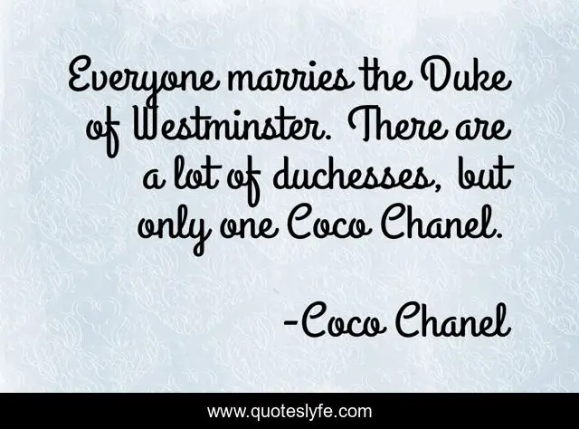 This page presents the quote "Everyone marries the Duke of Westminster. There are a lot of duchesses, but only one Coco Chanel.". Author of this quote is Coco Chanel. This quote is about individuality, royalty, rarity,.