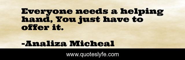 This page presents the quote "Everyone needs a helping hand, You just have to offer it.". Author of this quote is Analiza Micheal. .