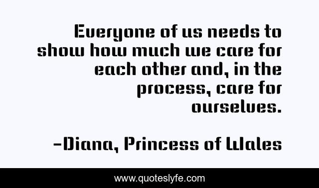 This page presents the quote "Everyone of us needs to show how much we care for each other and, in the process, care for ourselves.". Author of this quote is Diana, Princess of Wales. This quote is about positive, confidence, motivational, optimistic,.